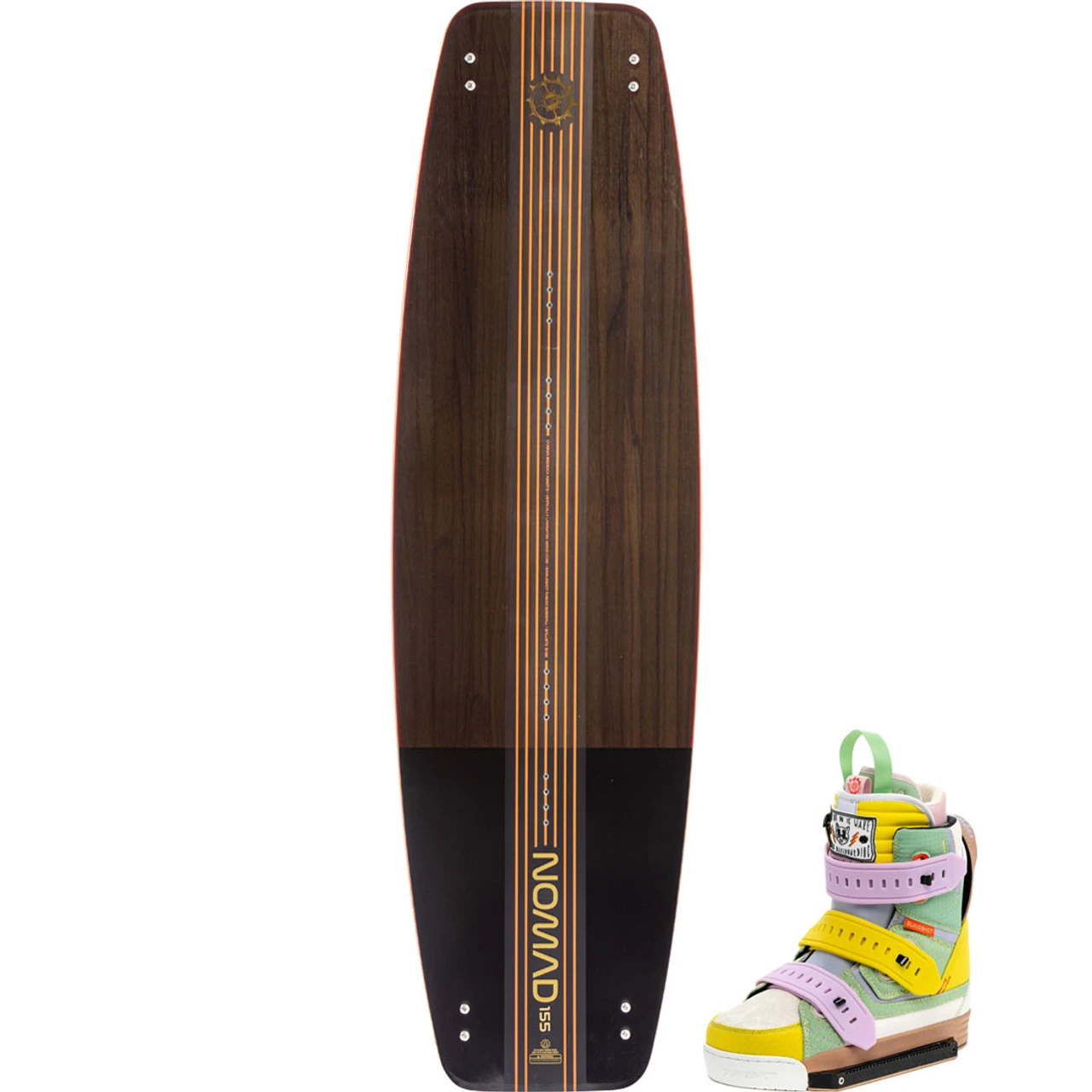 The Nomad is the board that inspired a revolution in wakeboarding over the past decade. Bigger boards are undoubtedly here to stay, and the Nomad is the GODFATHER of this movement. Released in 2015, it was the first board to cross the line of 150 centimeters, offered all the way up to 160cm. The benefit? Bigger pop, more stability, slower planing speeds and more controlled landings. Thanks to our thinner wood-core constructions, we’re able to produce a board of this size without a dramatic increase in swing weight. Whether you prefer to ride behind the boat or in the park, the Nomad is a whole new feel—an excellent choice to reinvigorate riders who claim to have “been there and done that”.